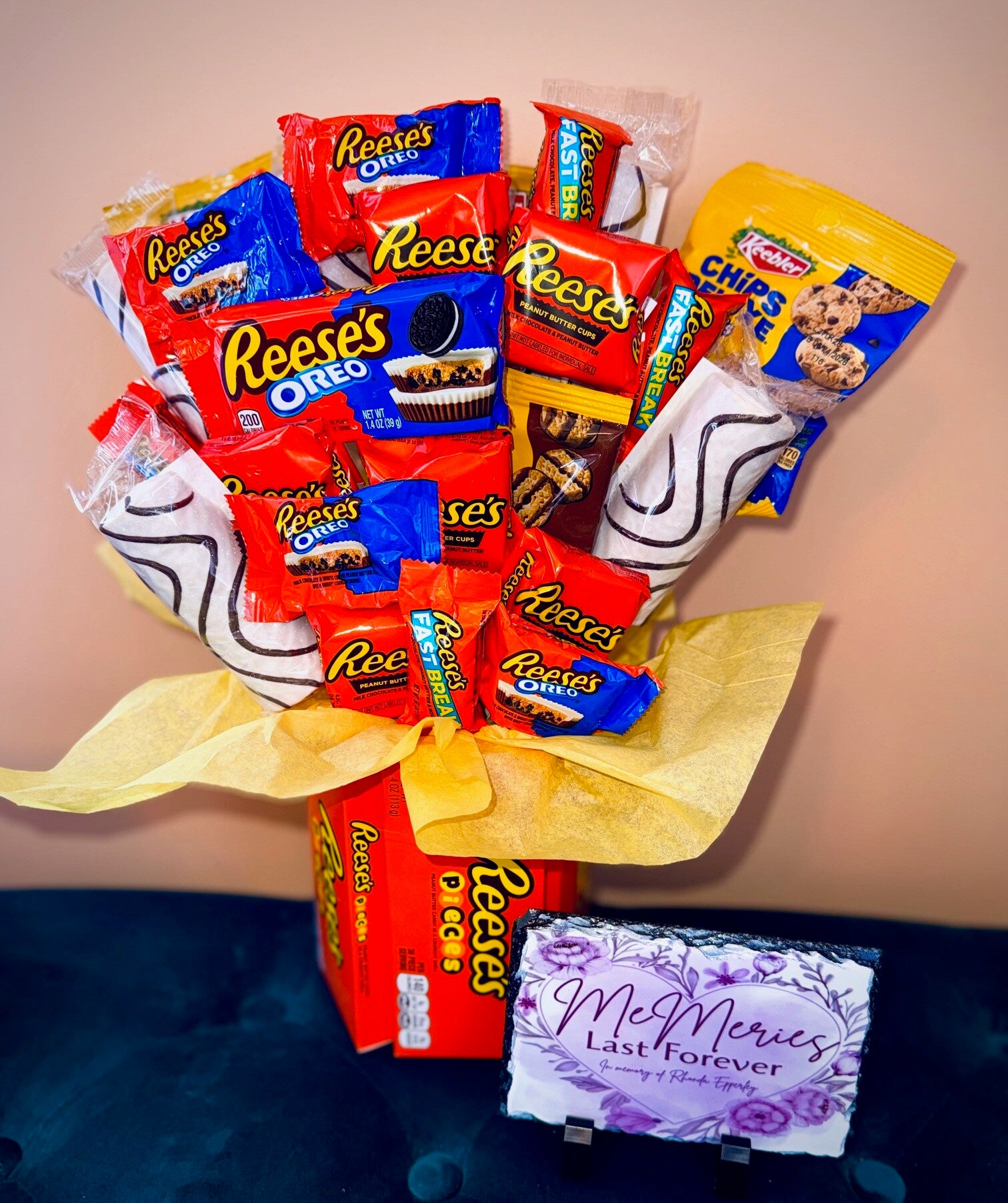 Fun, thoughtful edible arrangements made with a variety of candies and snacks, perfect for gifting, celebrating, or simply making someone smile. Each arrangement can be personalized to fit preferences, themes, or occasions, making it a sweet way to show you care.
